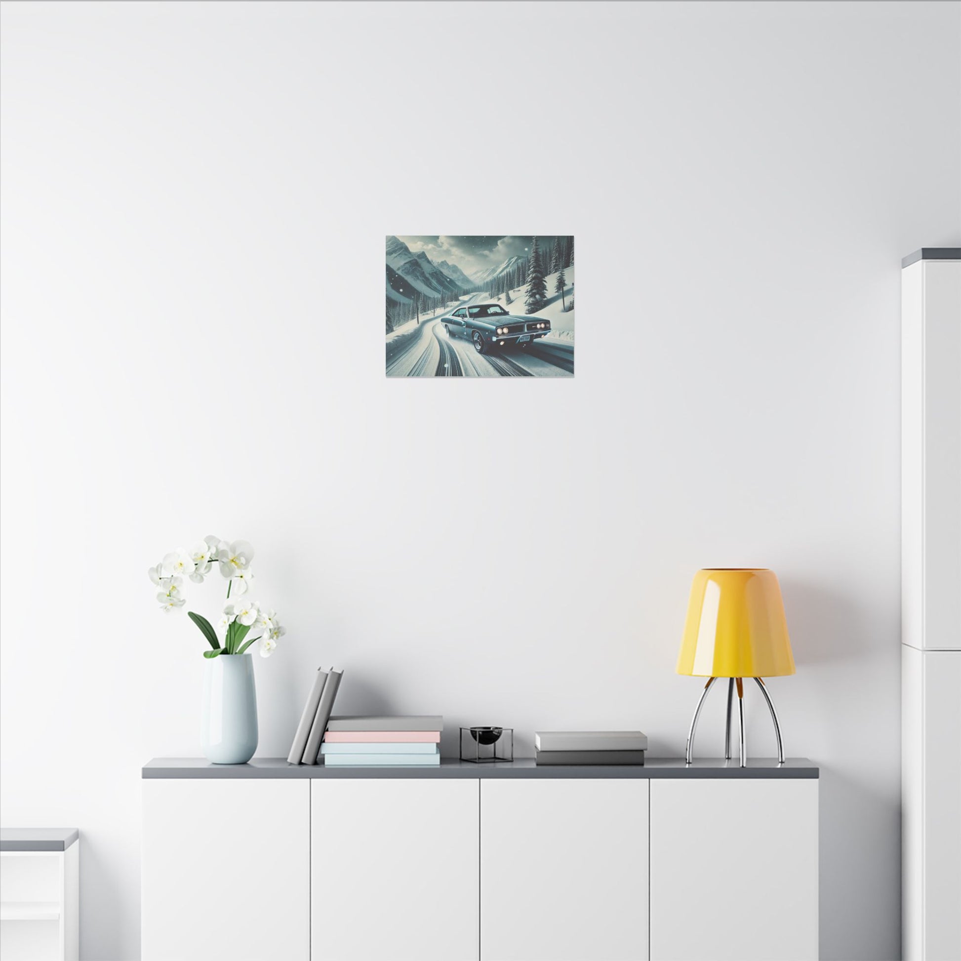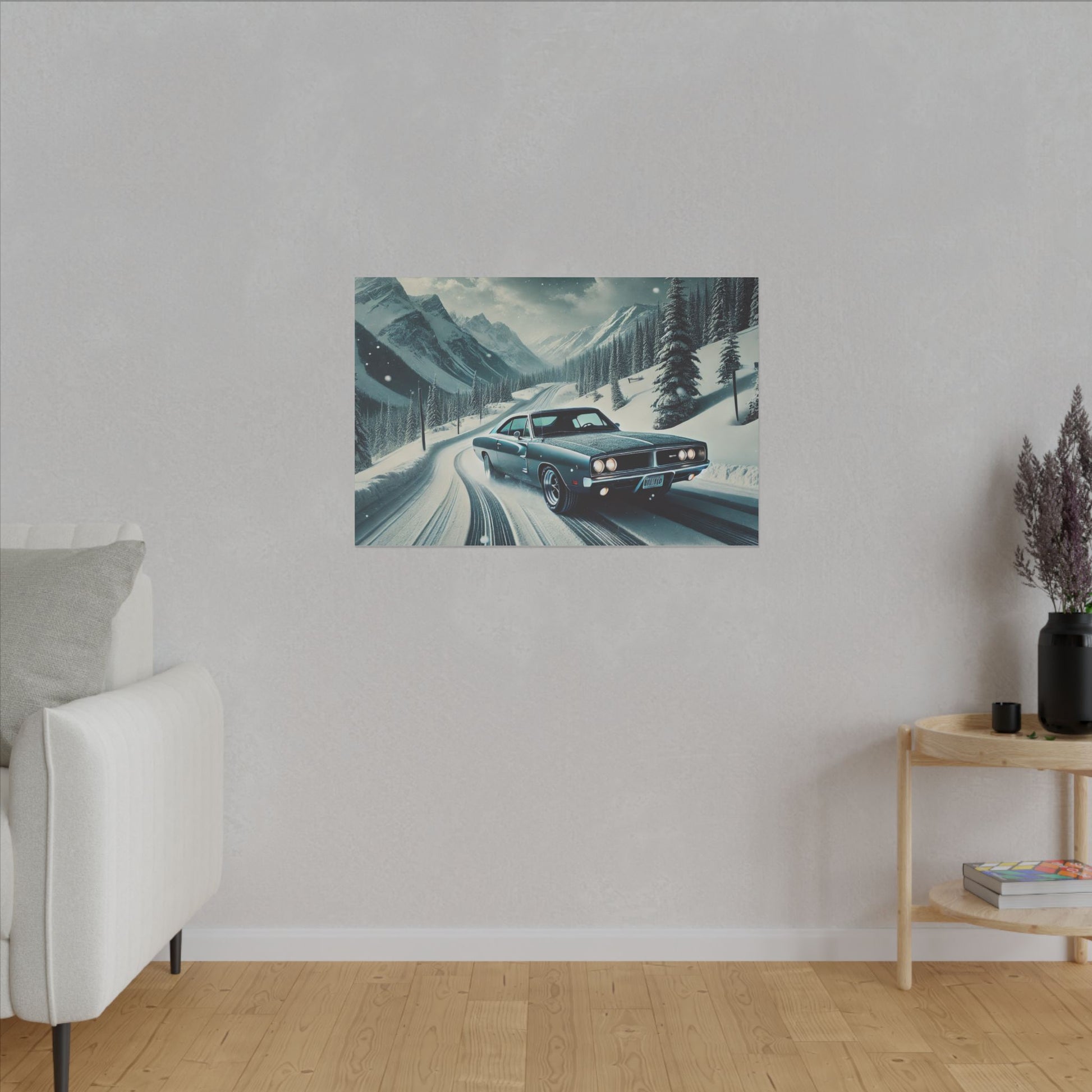 Evoke a sense of adventure and freedom with this matte canvas print featuring an American muscle car driving through snow-capped mountains. Perfect for car enthusiasts and those who love rugged landscapes, this canvas print is ideal for adding a bold statement to any room. Great for gifting during Christmas, Father's Day, or birthdays.