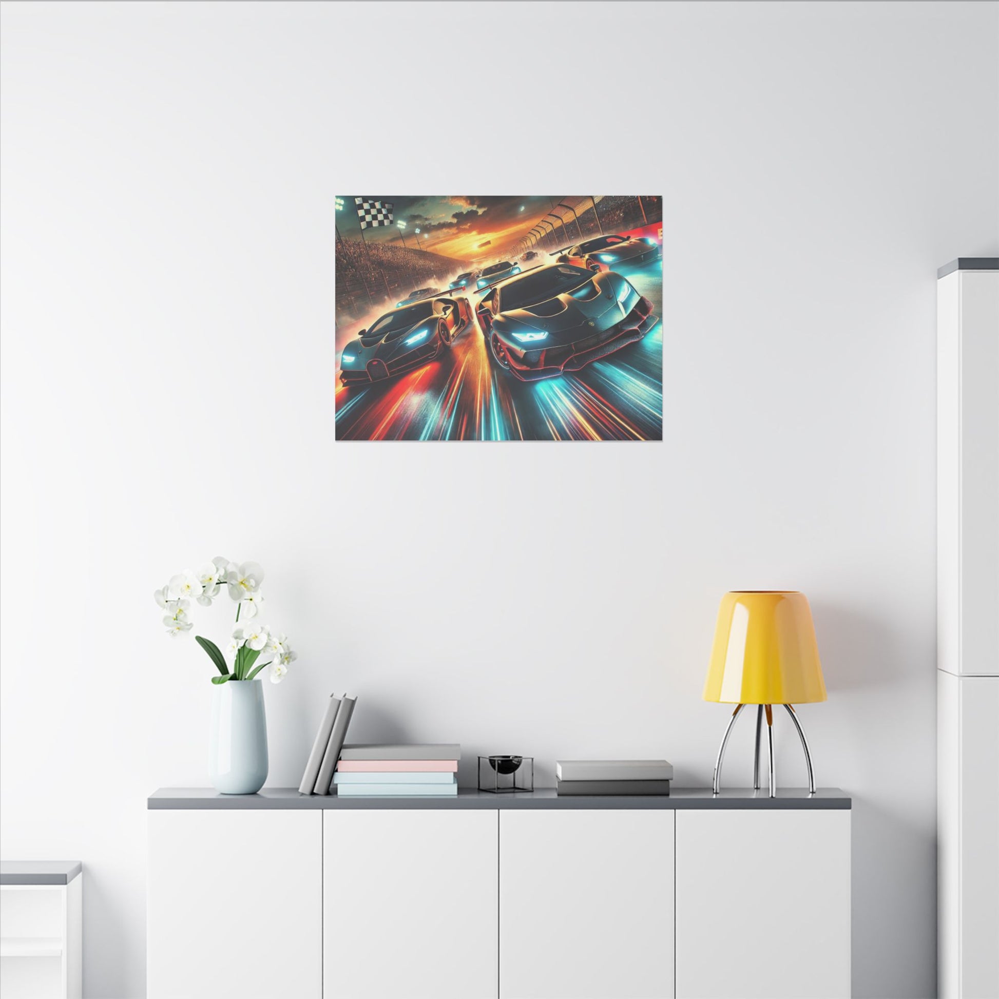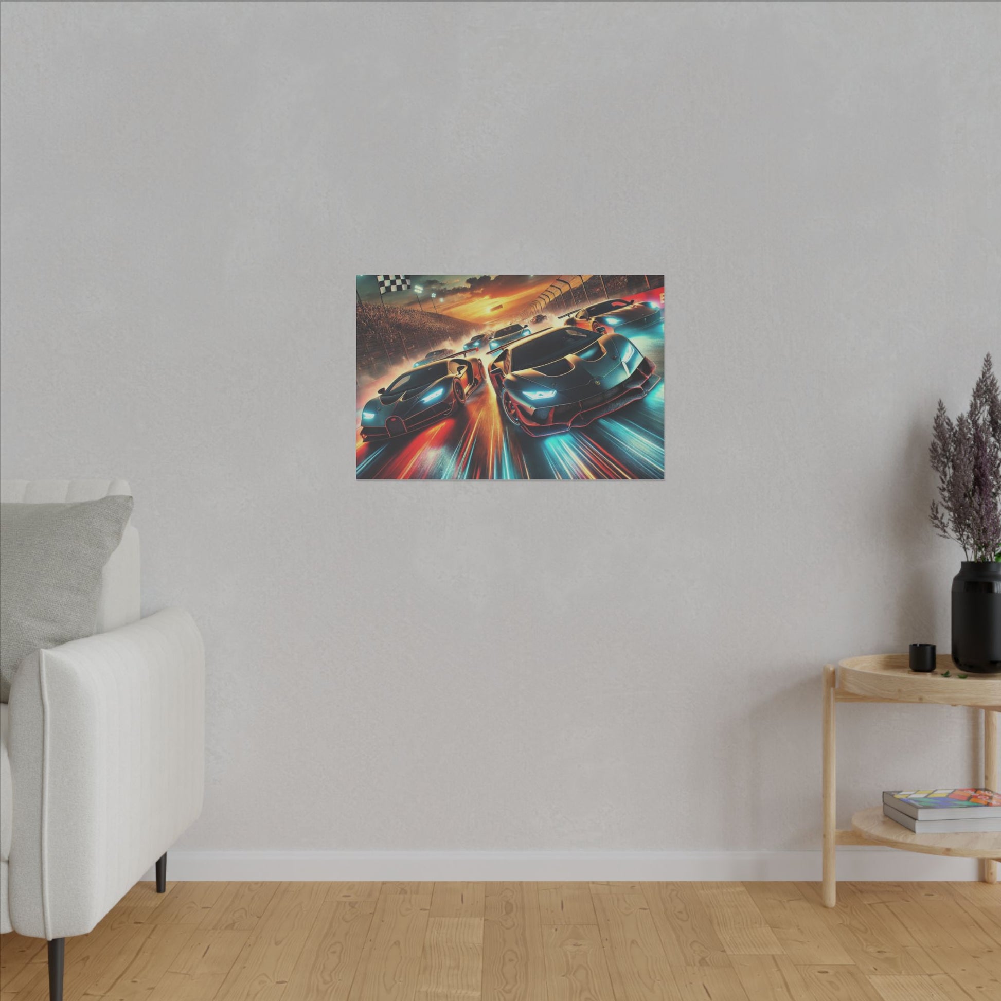 A vibrant canvas print featuring supercars racing, perfect for car enthusiasts and adrenaline junkies. This canvas adds excitement and energy to any space, making it ideal for a game room or man cave. Great for gifting during birthdays, Father's Day, or as a housewarming present.