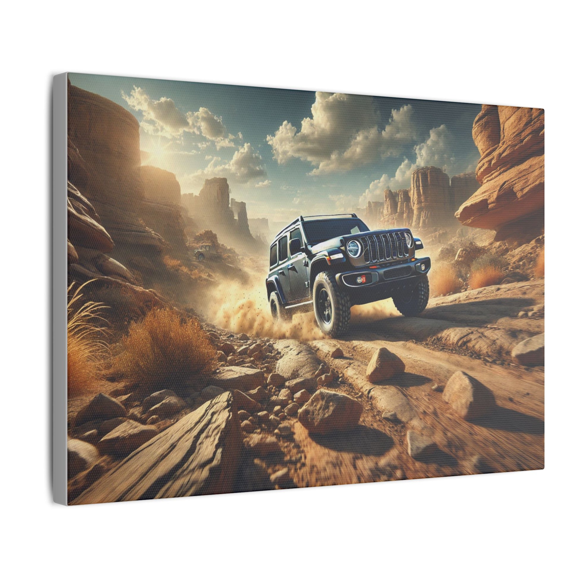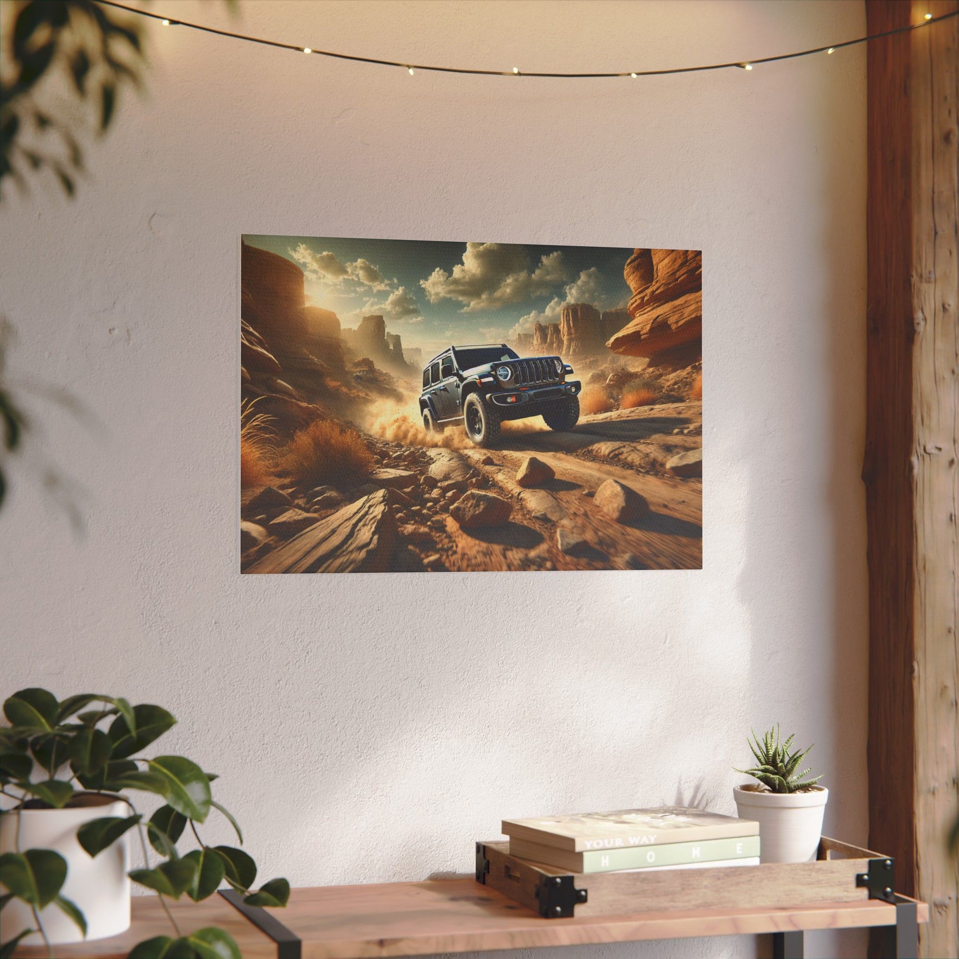 This canvas print featuring an SUV climbing rocks exudes a sense of adventure and ruggedness. Perfect for outdoor enthusiasts and nature lovers, this piece can add excitement to any living space. Ideal for those looking to add a touch of thrill to their home decor or for a unique gift for hikers and explorers. Relevant for Father's Day, birthdays, and for decorating man caves or home offices.